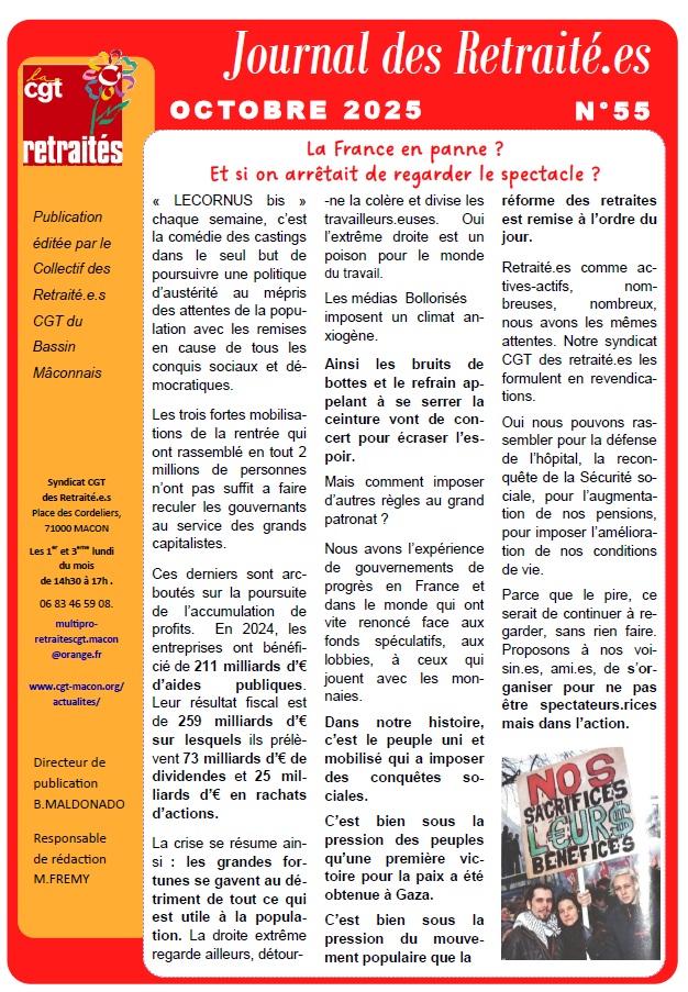 Nouvelle parution : le Journal des retraités d’octobre 2025 !